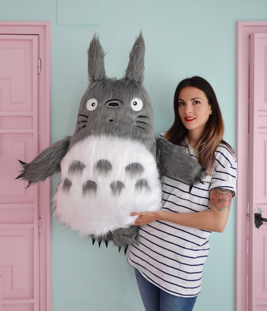 Really big Totoro soft toy, with long hair and all the details. It´ll be a very good friend and a cute comfortable pillow. It has a cute tail in the back too.